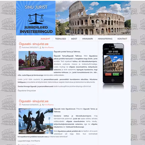 Koostöös ettevõttega, Juriidilised Investeeringud OÜ ja jurist Imre Rooma'ga saime avaldamisküpseks webilehe - www.sinujurist.ee Meil võib kõigil [...]